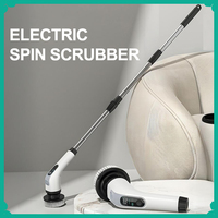 7 in 1 Electric Spin Scrubber / Cordless Cleaning Brush With 7 Replaceable Brush Heads and 3-Speed Control / Adjustable Shower Scrubber With Retractable Extension & Detachable Handle For Bathroom / Kitchen / Tub / Toilet / Tile / Windows – 7 in 1