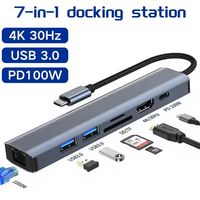 Hub Docking Station high definition TV 4K RJ45 Bracket Multi-port 7 in 1 USB C SD TF Type C Docking Station Hub Adapter