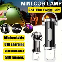 7 Light Modes Bright LED Mini Keychain Flashlight UV Light Red Blue Signal Lamp Portable Mini Flashlight Highlights Type-C Rechargeable Whistle Light Cap Clip Light