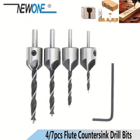 4/7pcs Wood Countersink Drill Set, HSS 5 Flute Drill Bit, Carpentry Reamer Woodworking Chamfer End Milling Wood Tool $3.80