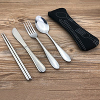 7Pcs Stainless Steel Tableware Set Knife Fork Spoon Chopsticks with Portable Cloth Bag for Outdoor Picnic Camping Travel Set $6.84