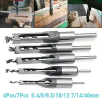 7PCS Woodworking Square Hole Drill Bit Mortising Chisel Drill Auger Drill Core Spade Drill Set 6.4/8/9.5/10/12.7/14/16mm