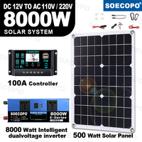 SOECOPO 8000W Solar System Kit Dual 12V 24V To 110V 220V Inverter 100A Controller 600W Photovoltaic Panel for Home Camping $214.88