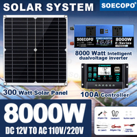 SOECOPO 8000W Off-Grid Solar Generator Kit Dual 12V 24V To 110V 220V Inverter 100A Controller 300W Panel for Home/RV/Camping $106.62