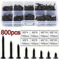 800pcs Black Carbon Steel Self Tapping Screws 800pcs Set Flat Head M2 Screws Cross Head Countersunk Cross Screws $7.92