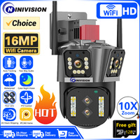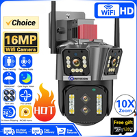 16MP WIFI Camera UHD Outdoor 10X Optical Zoom Automatic Tracking 8K PTZ Four Lens Three Screen Waterproof Security Camera CCTV $45.65