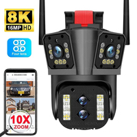 8K WIFI IP Camera 16MP HD Outdoor 10X Optical Zoom Automatic Tracking PTZ Four Lens Three Screen Waterproof Security Camera CCTV $45.65