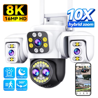 8K 16MP WiFi IP Camera 10X Zoom Four Lens Three Screens Outdoor CCTV Video Surveillance Ai Tracking 8MP PTZ Home Security Camera $30.34