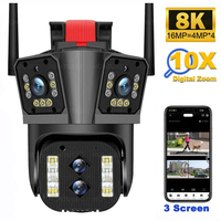 16MP 8K HD Wifi IP Camera Four Lens Three Screen 10X Zoom Outdoor PTZ Security Camera Auto Tracking Security Protection CCTV Cam $66.63