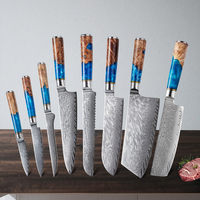 1-8pcs Professional kitchen knife set Damascus Steel Set for Meat Cutting Sushi Peeling and Boning Blue Resin Wood Handle $20.22