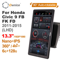 13.3 Inch Ownice 1Din Android 12.0 Car Radio 360 Panorama for Honda Civic 9 FB FK FD 2011 – 2015 Auto Audio SPDIF 4G LTE NO DVD $531.35