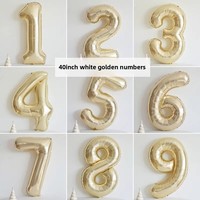1PCS 40 inch large white gold light gold digital foil balloon for girls’ birthdays helium big number0-9 balloon decoration