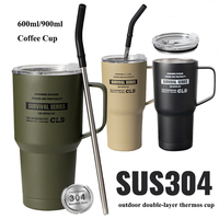 900ml Large Capacity Water Cup 304 Stainless Steel Car Insulated Cup with Straw and Handle Double Walled Travel Sports Water Bottle – Black