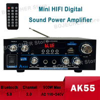 AK55 Bluetooth 5.0 HIFI Audio Stereo Amplifier 900W Max Digital Sound Power Amplifier Channel 2.0 For Car Music Player EU Plug $37.54