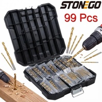 STONEGO 99Pcs Titanium Coated Twist Drill Bits Set Straight Shank Woodworking Drilling Tools for Metal Wood Plastic $18.89