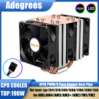 QiuzAim Silent Radiator 6 Heat Pipe Computer Processor Air-cooled 4Pin/PWM CPU Cooler Fan Installing LGA2011 x79 x99 2066 AM3AM4