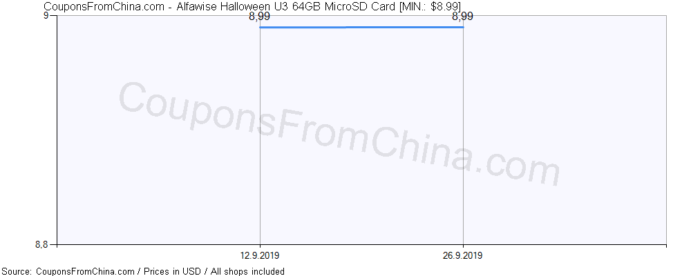 Do you need price history chart (for all/most countries) for Alfawise Halloween U3 64GB MicroSD Card? There we go. The lowest price was: $8.99.