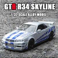 1:32 GTR R34 SKYLINE Alloy Car Model Original title (Aliexpress): 1:32 GTR R34 SKYLINE Fast Alloy Simulation Car Model Diecasts & Toy Vehicles And Furious Cars Decoration Toys For Children Boy |