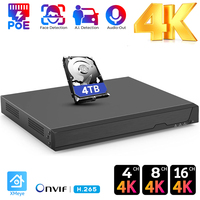 4K 4Ch 8Ch POE NVR Onvif Network Video Recorder for IP Cameras CCTV PoE Recorders 8-Channel Power Over Ethernet NVR XMEye APP $81.34