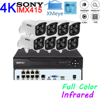 Full Color Infrared 4K 8M IMX415 H.265+ Metal ONVIF Face Detection Audio 8CH 8 Channel POE IP CCTV Camera NVR DVR Kits System $146.03