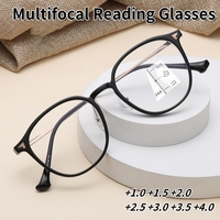 2024 Progressive Multifocal Reading Glasses Men Women Fashion Round Frame Anti Blue Light Retro Far Sight Eyeglasses +1.0 +1.5