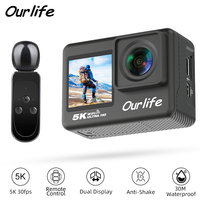 Ourlife Action Camera 5K 4K60FPS EIS WiFi Dual Screen 170D 2.0 Inch Touch Screen 30M Waterproof Sport Camera With Remote Control $55.38
