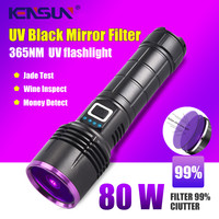 4 Core LED High Power 365NM UV Flashlight Powerful LED Ultraviolet Lamp Type-C USB Rechargeable Black Mirror Purple Light Detecting Torch – Black