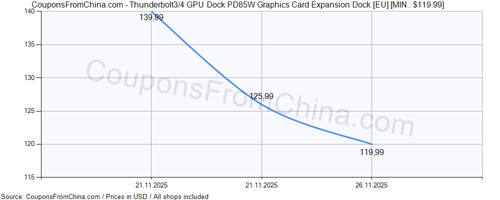 ![Thunderbolt3/4 GPU Dock PD85W Graphics Card Expansion Dock [EU] price history Price history for Thunderbolt3/4 GPU Dock PD85W Graphics Card Expansion Dock [EU]](https://couponsfromchina.com/pricehistory/History54935.png)
