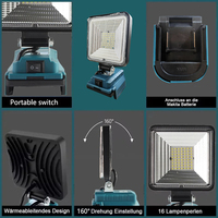 Outdoor Flood Light 3 inch Work Light For Makita 14.4V 18V Li-ion Battery LED Flashlight Lantern Camping Lamp Emergency Lighting – Black