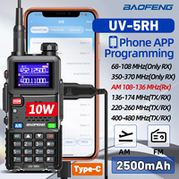 Baofeng UV-5RH 10W Tri-band Walkie Talkie 3800mAh Type-C Rechargeable Wireless Copy Frequency Handheld Two-way Radio – Radio+Type-C Cable