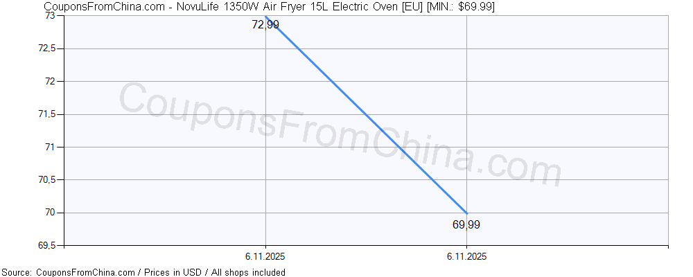 ![NovuLife 1350W Air Fryer 15L Electric Oven [EU] price history Price history for NovuLife 1350W Air Fryer 15L Electric Oven [EU]](https://couponsfromchina.com/pricehistory/History54835.png)
