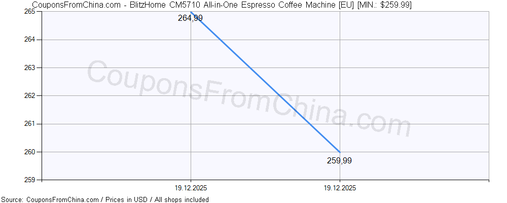 ![BlitzHome CM5710 All-in-One Espresso Coffee Machine [EU] price history Price history for BlitzHome CM5710 All-in-One Espresso Coffee Machine [EU]](https://couponsfromchina.com/pricehistory/History55089.png)