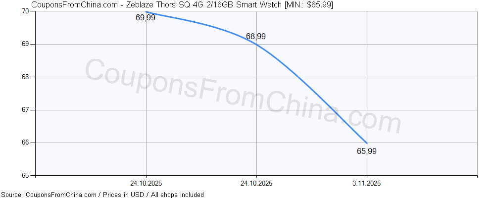 Check out price history chart (for all/most countries) for Zeblaze Thors SQ 4G 2/16GB Smart Watch. The lowest price was: $65.99.