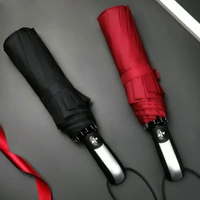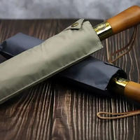 Automatic 10-Rib Wooden Curved Handle Automatic Umbrella 10K Automatic Folding Umbrella Rain Wind Resistant Umbrella Men Women UV Sun Protection Wooden Handle Umbrella – Black