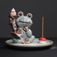 Geyao Ice Crack Frog Incense Holder Stick Incense Base Smoking Backflow Cones Burner Aromatherapy Censer Indoor Home Decor