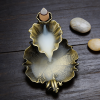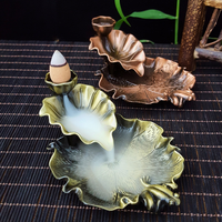 Copper Backflow Incense Holder Base Lotus Leaf Waterfall Incense Burner Yoga Aromatherapy Relaxation Censer Home Tea Pets Gifts