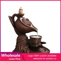 With 10Pcs Incense Cones,Waterfall Backflow Teapot Holder Ceramic Censer