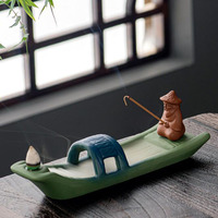 Dark Green Porcelain Stick Incense Holder Old Man Fishing Smoking Backflow Cones Aroma Burner Fragrance Censer Home Decor