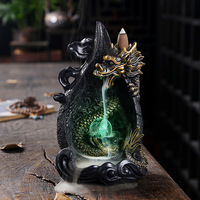 LED Dragon Backflow Incense Holder Waterfall Smoke Censer +20Backflow Cones Aromatherapy Ornament