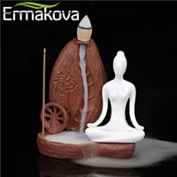ERMAKOVA Ceramic Incense Burner Backflow Yoga Girl Censer Incense Cones Burner Towel Incense Stick Holder Home Yoga Studio Decor