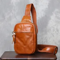 Retro Tanned Leather Men’s Handmade Chest And Top Cover Layer Cowhide Crossbody Backpack Leather Personalized Casual Men’s Bag