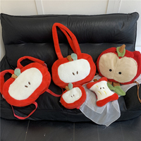Plush Red Apple Drawstring Backpack Large Capacity Shoulder Bag Soft Cartoon Crossbody Bag Girl Cosmetic Bag Christmas Gift