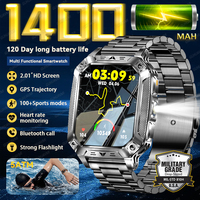 2026 New 1400mAh Battery Outdoor Sports SmartWatch 5ATM Waterproof Flashlight Bluetooth Call Health Monitor Military Smartwatchs $49.04