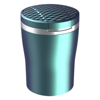 y1gd Car Ashtray Portable Smell Proof with Lid LED Blue-Light Trash Can Single Holder Luxury 4 Elegant Colors $1.72