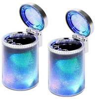 Ashtray Set Portable Car LED Cigarette Ash Holders Cup Trash Can Car Interior Decoration One Click Lid Opening $10.23