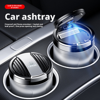 Portable Car Ashtray with Lid ,Detachable Mini Car Trash Can with LED Blue Ligh, aluminium alloy Smokeless Ash Tray $15.26