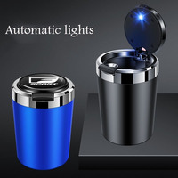 Luxury Car Ashtray with Lid Automatic Led Light Ash Tray Portable Stainless Steel Smell Proof Ashtray Fireproof Heat Insulation $6.81