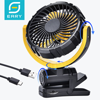 Eary Car Clamp Fan 2000mAh Battery With 900° Rotatable Foldable Strong Clip Base 3 Speeds Wind USB Rechargeable Air Cooling Fan $18.78