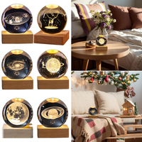 3D Engraved Warm Light Nightlight with Wooden Base Crystal Ball Lamp USB Charging Lighted Crystal Ball for Desktop Art Decor $16.53