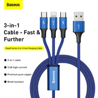 Baseus 3 in 1 USB Type C Cable For iPhone 12 Pro Max Micro USB Android Mobile Phone Cable For Samsung Xiammi USBC Data Wire Cord $5.14